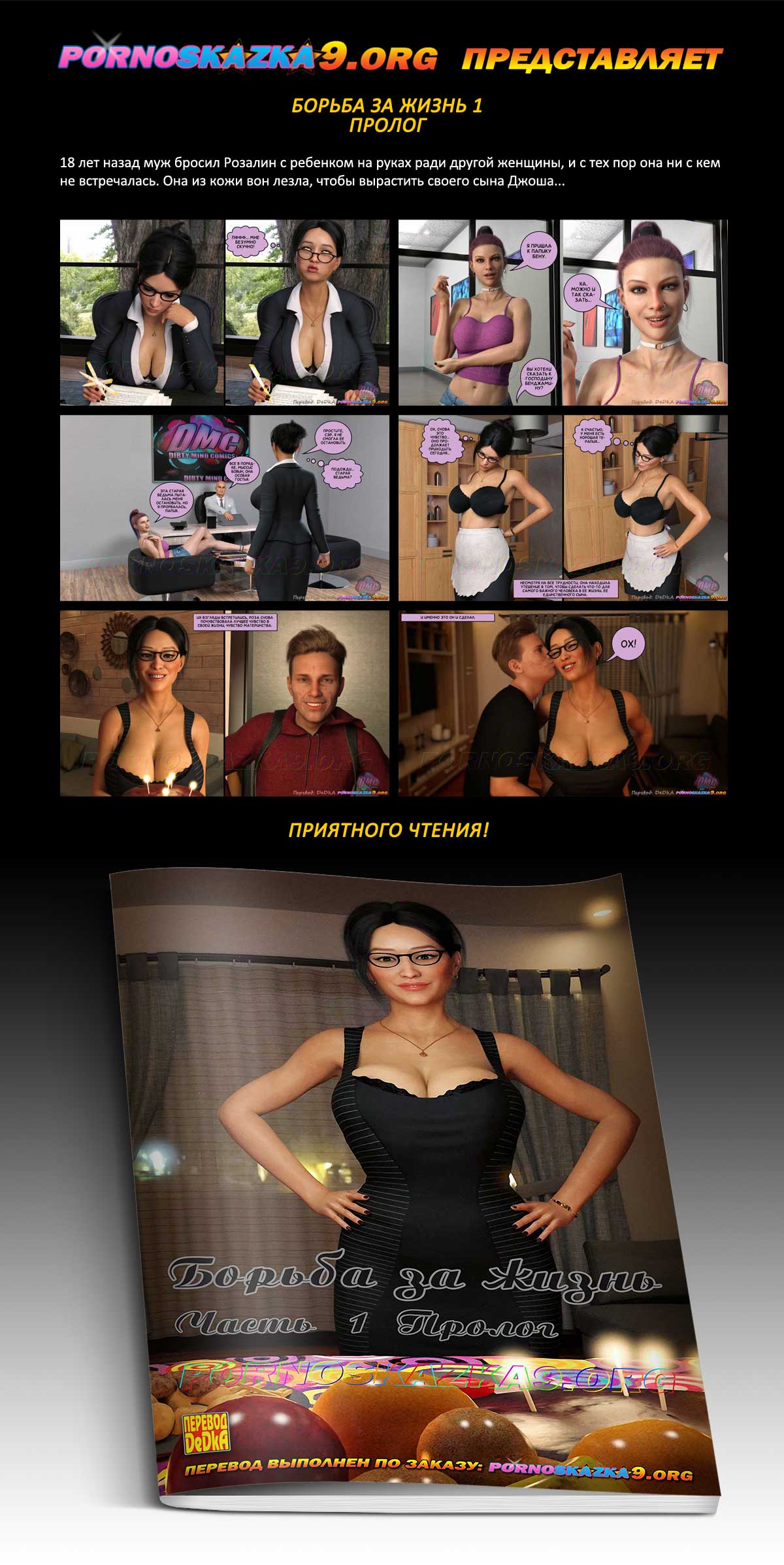 Порно комикс «Борьба за жизнь. Часть 1. Пролог.» 18 лет назад муж бросил Розалин с ребенком на руках ради другой женщины, и с тех пор она ни с кем не встречалась. Она из кожи вон лезла, чтобы вырастить своего сына Джоша…